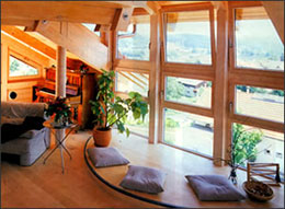 Ein unkonventionelles Holzhaus - da überrascht es nicht, daß auch bei der Raumaufteilung nicht gerade alltägliche Lösungen gefunden wurden. Ein Haus für entdeckungsfreudige Individualisten, abseits üblicher Vorstellungen und Klischees. Lassen Sie sich überraschen.